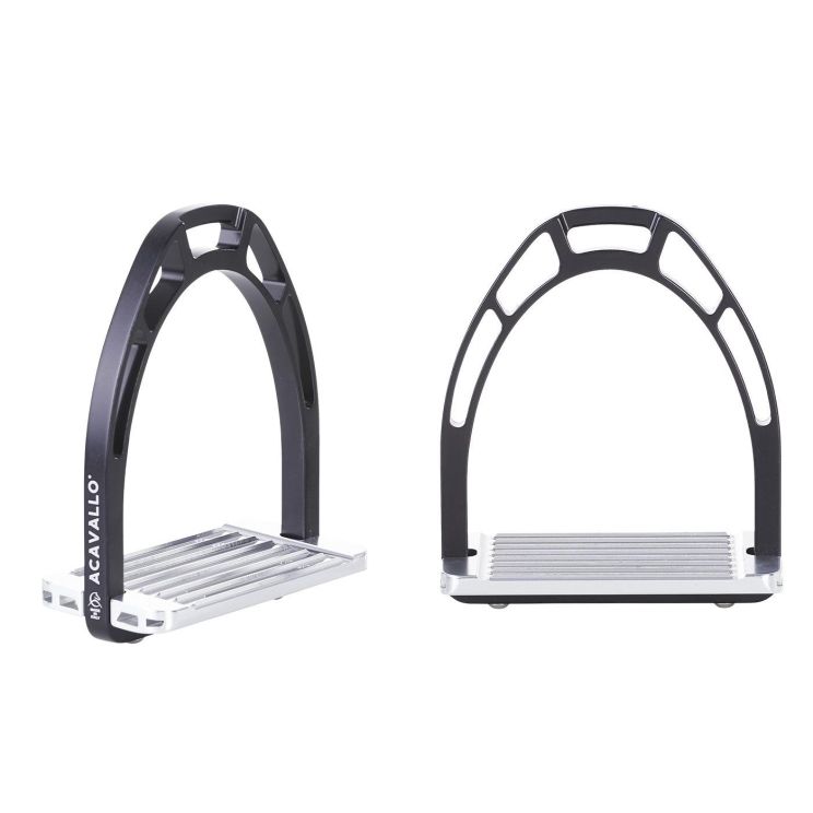 AcavalloL'étrier Acavallo est fabriqué en aluminium de haute qualité et est conçu avec un poids maximum de 310 grammes par étrier. Ceci est beaucoup plus bas que les autres étriers et est donc défini comme un étrier léger. La semelle intérieure nervurée empêche la saleté de s'accumuler.