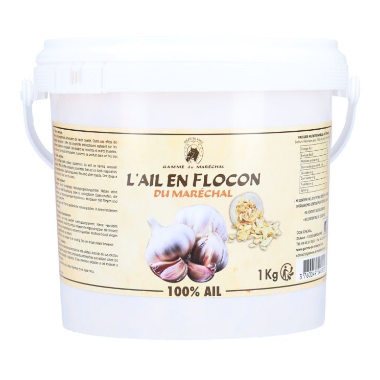 Gamme Du MarechalOptez pour l'Ail en Flocon du Maréchal, un complément alimentaire naturel pour chevaux qui agit comme répulsif contre les insectes tels que les mouches, les tiques et les taons.