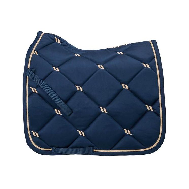 Ce tapis de selle de dressage à une découpe à l’avant qui offre encore plus de liberté du garrot. Les sangles de fixation de l'anneau "D" qui sont placées plus haut sur le bord avant du tapis, réduisent le risque de points de pression sur l'épaule.