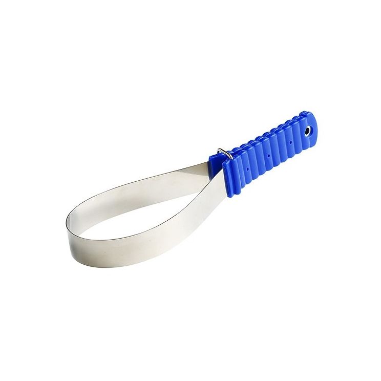 Lame inox lisse 30 mm, poignées en plastique antidérapant avec anneau de blocage servant à relier les deux poignées.
