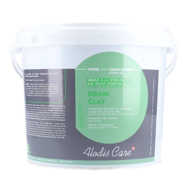 La Drain Clay d'Alodis est une argile drainante spécialement formulée pour évacuer les toxines et favoriser une récupération musculaire optimale. Utilisée en cataplasme sur tout le corps et les membres des chevaux, cette argile naturelle est enrichie en huiles essentielles qui permettent de détoxifier le corps de votre cheval, tout en favorisant la détente et la réparation des tissus.