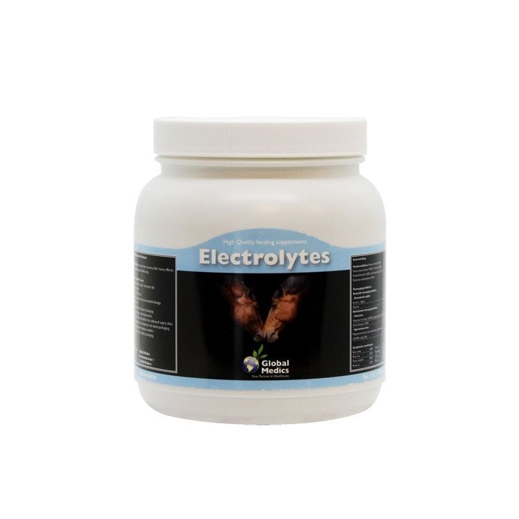 Poudre d’électrolytes de Global Medics pour chevaux. Un manque de liquides et d’électrolytes chez les chevaux peut entraîner des muscles tendus, des crampes musculaires, une réduction de motivation au travail, une diminution des performances et de la déshydratation.
