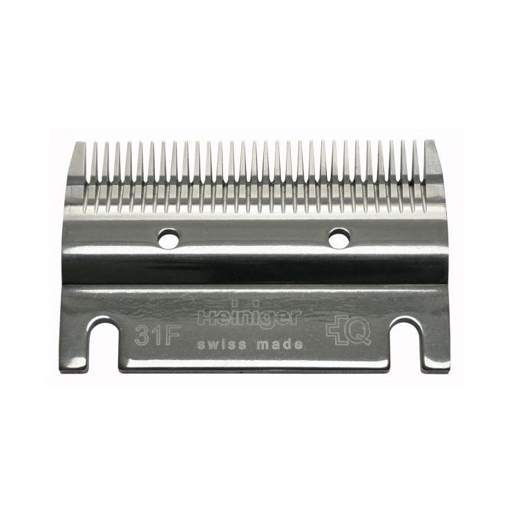 Jeu de peignes Heiniger pour longueur de poil : 1 à 2 mm. Peigne supérieur : 23 dents et peigne inférieur : 31 dents.