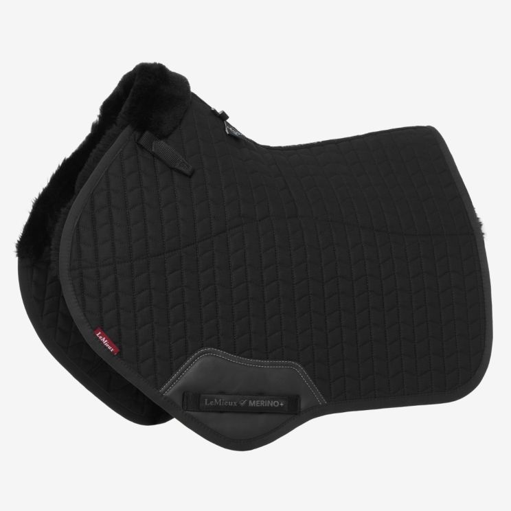 This pad is half-lined with our Australian Merino+ blend (70% Merino 30% acrylic), which, combined with a flexible backing, washes better and dries faster for ultimate comfort and convenience. The dense and soft dynamic wool structure consistently shapes to your horse's back offering breathable support.