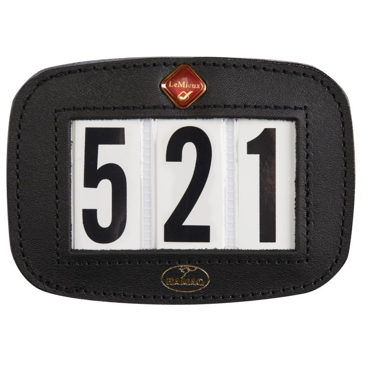 Support en cuir chic pour les numéros de départ. Facile à attacher à votre tapis de selle. Disponible en noir et blanc.