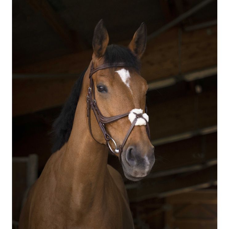 NortonFilet en cuir de buffle avec têtière, doublé de cuir de vachette. Muserolle et frontal avec surpiqûres décoratives.