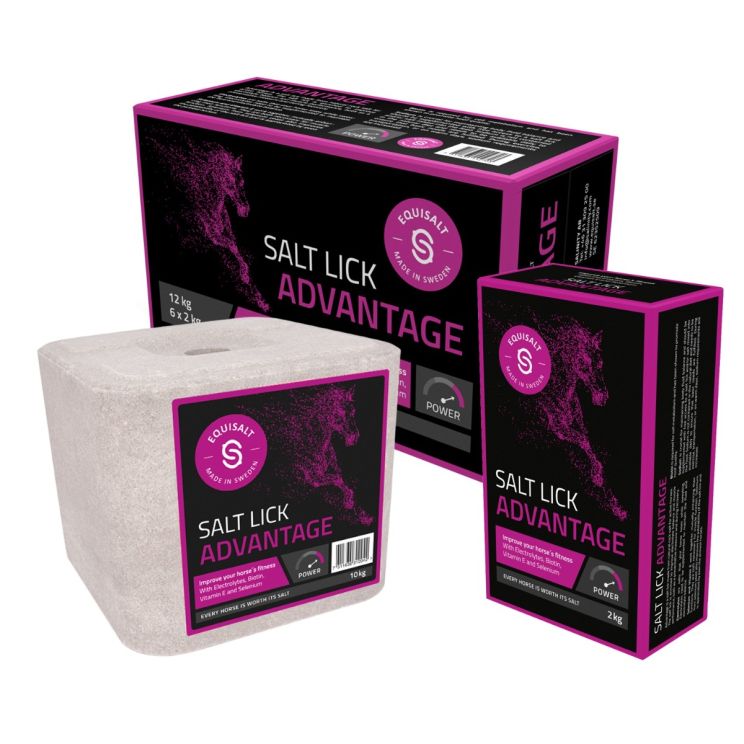 EquiSalt Advantage est une pierre à lécher faite de sel de roche naturel pour les chevaux actifs.