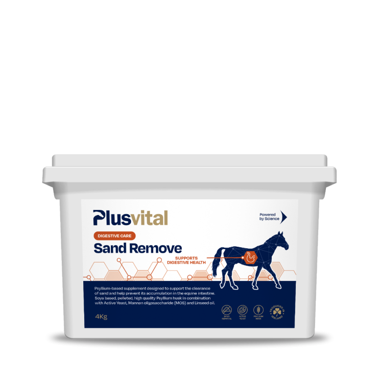 Plusvital Sand Remove is een op psyllium gebaseerde, gepelleteerde aanvulling die is ontwikkeld ter ondersteuning van de natuurlijke afvoer van zand uit de darmen van het paard en helpt ophoping te voorkomen.