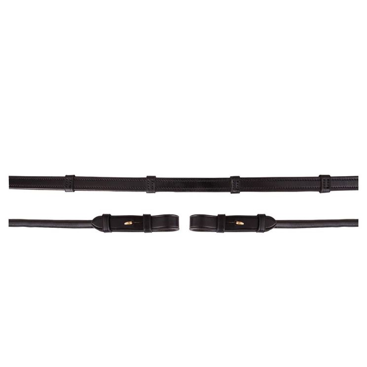 Rênes de dressage en toile avec caoutchouc sur l’intérieur pour plus d’adhérence.