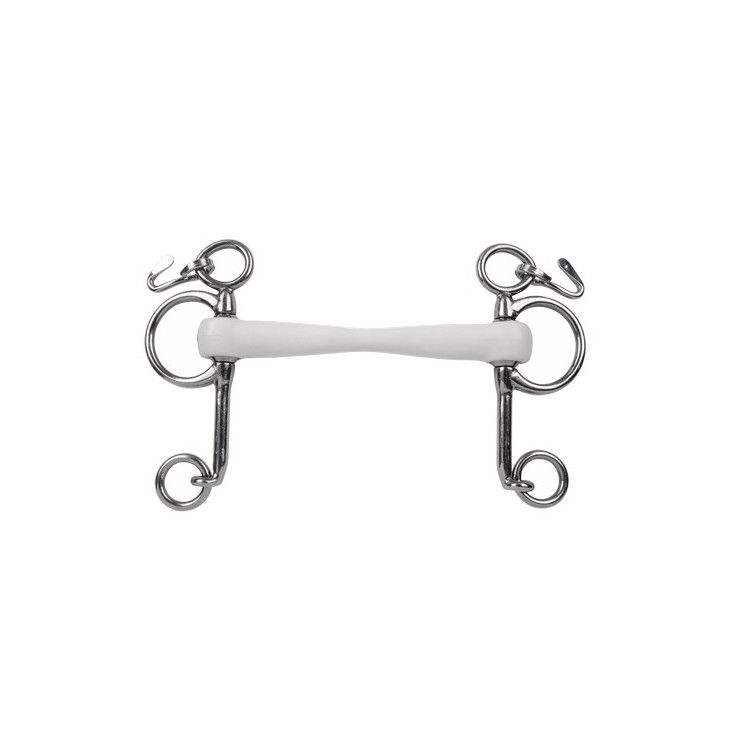 Ce Pelham a des branches de 70mm. La longueur des branches détermine la force du Pelham, plus les branches sont longues, plus l'effet est fort. Ce mors est également disponible dans une version "Baby Pelham", cette version a des branches plus courtes pour un effet plus doux.