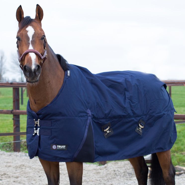 Couverture d'extérieur imperméable, très chaude, avec 400gr de rembourrage de la marque Trust. Dispose du système innovant Tetris pour le confort et la liberté de mouvement du cheval.